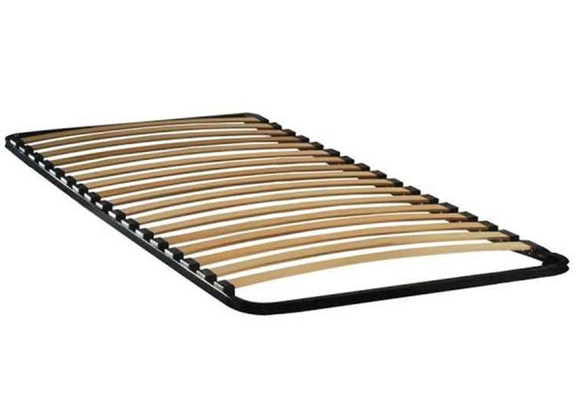 В основании каркаса - кровати находится металлический каркас (откуда взялось название), к которому крепятся к ламели. Ламели изготовлены из буковой гнутоклееной фанеры шириной 53 мм и толщиной 8 мм. Они закреплены на каркасе так, чтобы они были слегка выпуклыми. При нагрузке ламели, благодаря своей гибкости, выпрямляются, создавая плоскую поверхность. Если каркас рассчитан на двуспальную кровать, то он оборудован двумя рядами ламелей. Каркас выполнен из металлического профиля 25 мм х 25 мм х 1,5 мм, покрашенный порошковой краской (стандартный цвет черный). В данном каркасе ламели находятся на расстоянии 6,5 см один от другого.