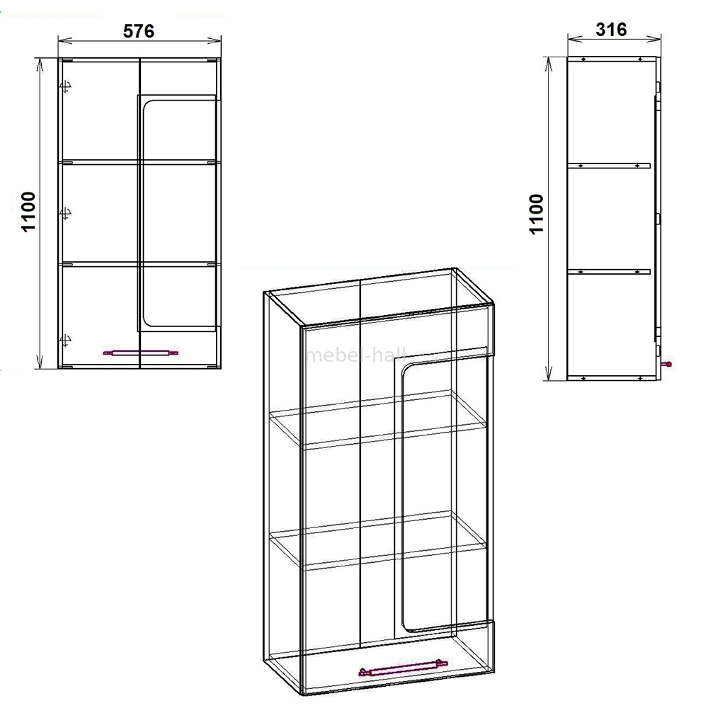 Тумба навесная с стеклянной дверью Компанит Модульной гостиной 3