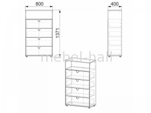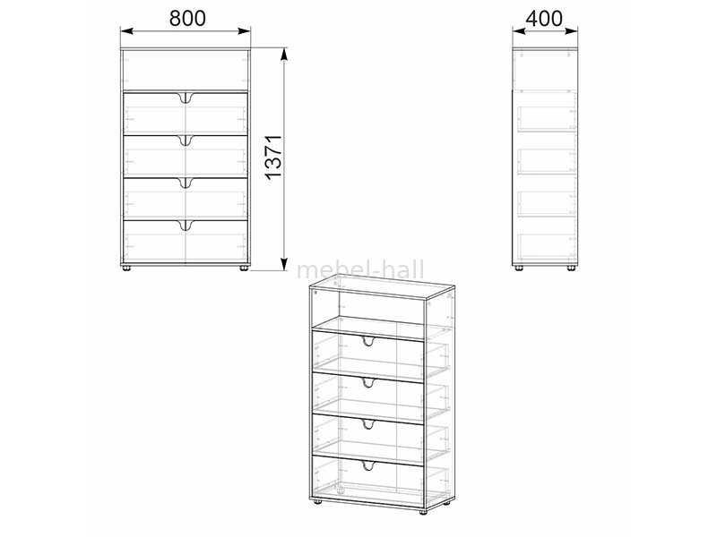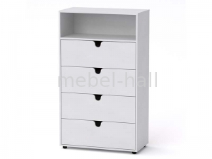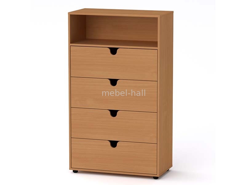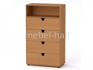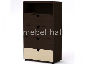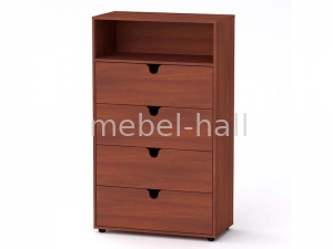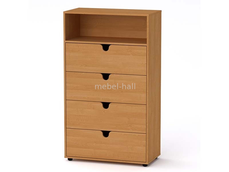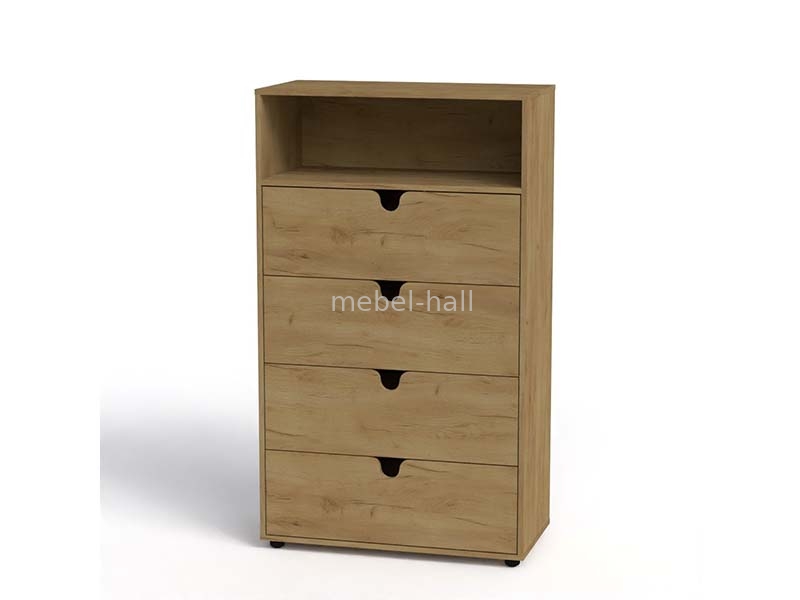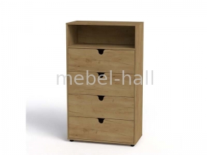 Комод идет с четырьмя выдвижными ящиками на роликовых направляющих, и открытой полкой, на которых Вы сможете разместить свои книги, документы или нужные вещи.