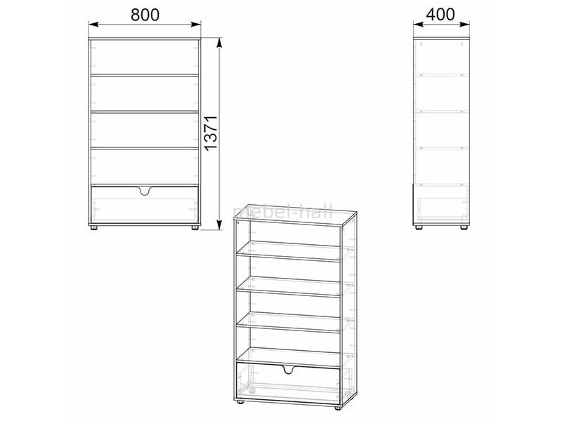 Комод идет с одним выдвижными ящиками на роликовых направляющих, и четырьмя открытыми полками, на которых Вы сможете разместить свои книги, документы или нужные вещи.