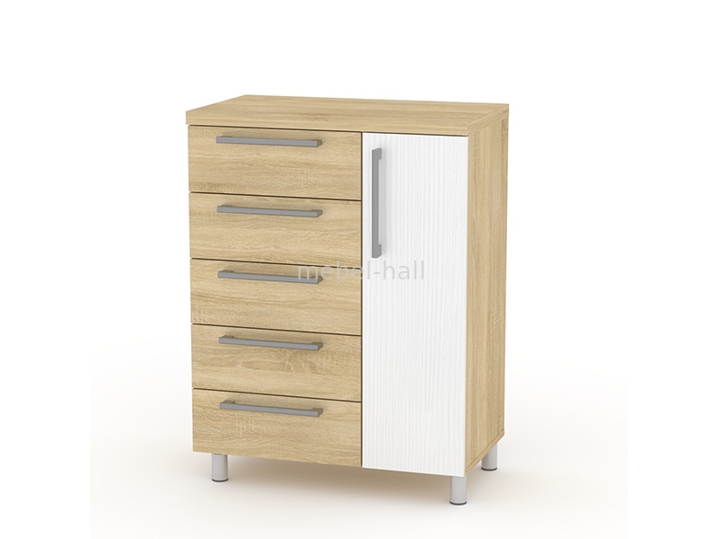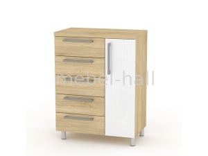 Корпус и фасад выполнены из ламинированного ДСП различных цветов под дерево.