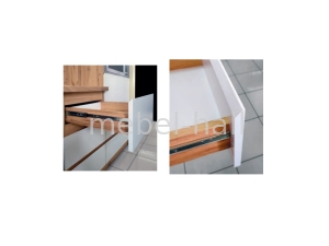 Белые фасады могут похвастаться трендовым дизайнерским решением оформления и функцией открывания. Фигурное углубление выполняет функцию ручки, что чрезвычайно практично в эксплуатации.