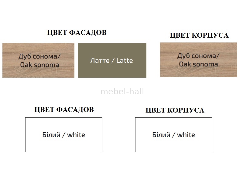 | Цвет фасадов: | Дуб Сонома, Латте, Белый Мат |