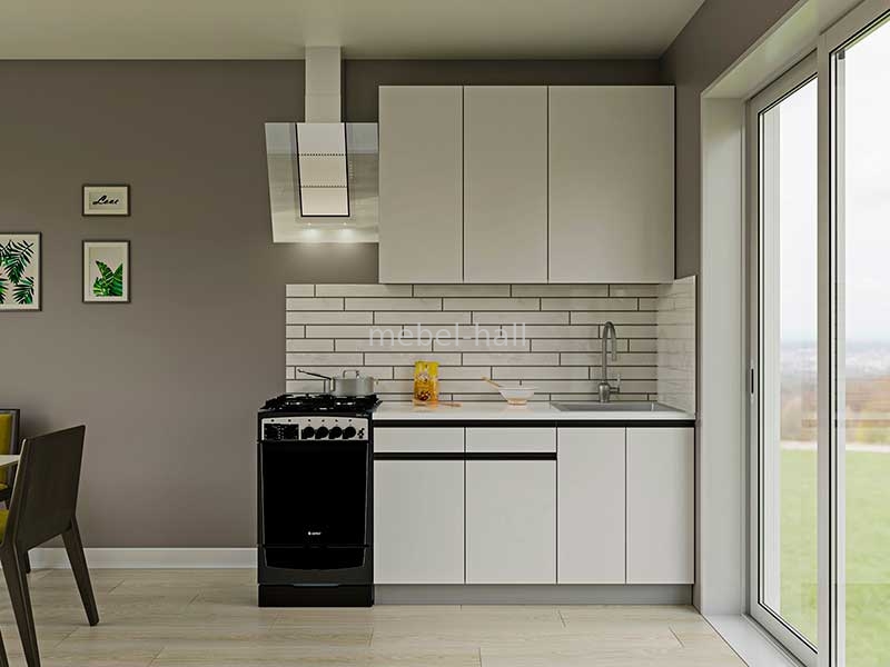 Фабричная модульная кухня Альфа с фасадами из ламинированного ДСП с встроенной ручкой типа "Gola"