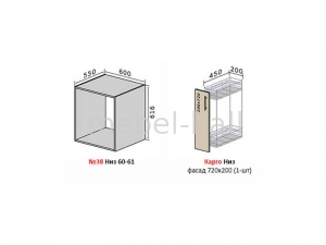 Нижние секции на регулируемых ножках, которые закрываются цоколем.