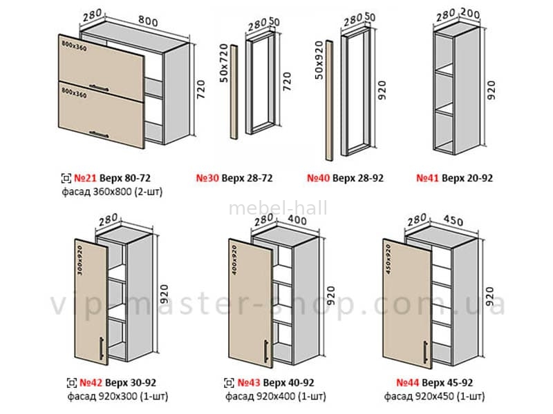 | Высота верхних секций, см: | 51, 72, 90, 110 |