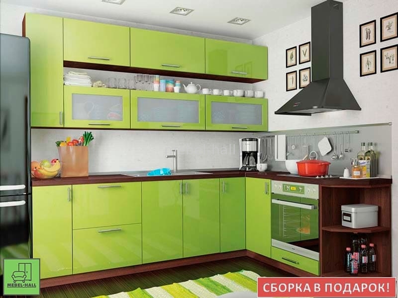 Кухня "Колор-Микс" комплектуется крашенными МДФ фасадами в глянцевом исполнении, толщиной 16 мм.