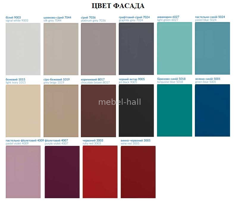 | Цвет фасадов: | Красный, Шелково-Серый, Графитовый-Серый, Аквамарин, Бежевый, Серо-Бежевый, Коричневый, Черный Янтарь, Бирюзово-Синий, Винно-Красный, Пастельно-Синий, Зелено-Синий, Пастельно-Фиолетовый, Фиолетовый, Серый, Белый Глянец |