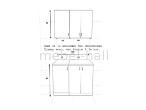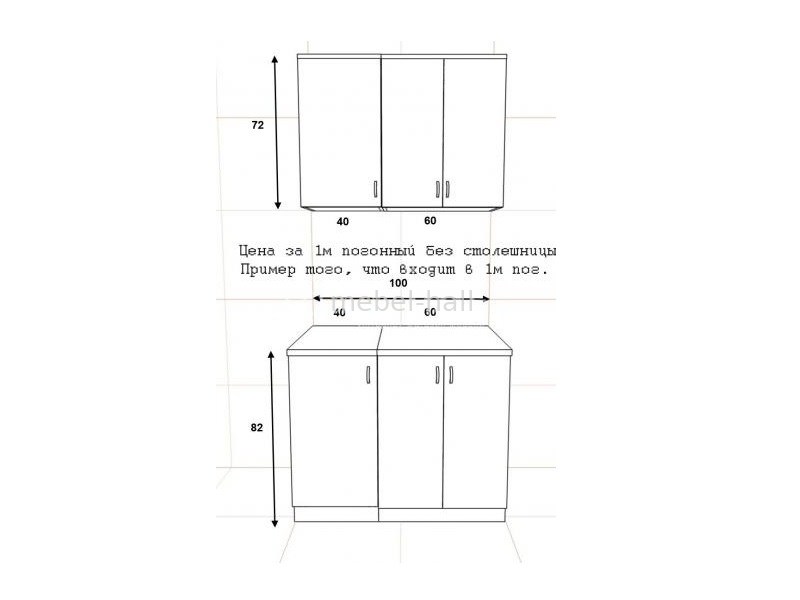 Внимание! Цена указана за 1 погонный метр условной кухни. Стандартный набор модулей состоит из: 60 низ двери + 60 верх двери, 40 низ двери + 40 верх двери. Для точного просчета по цене нужно выбрать интересующие кухонные модули. Столешница заказывается отдельно.