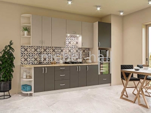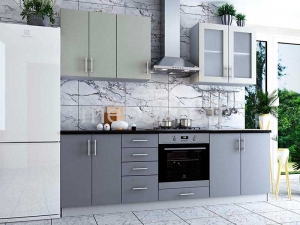 Кухня продается по секциям, которые подходят для создания как прямой, так и угловой кухни. Вы можете выбрать те модули, которые подойдут именно под габариты Вашего помещения.