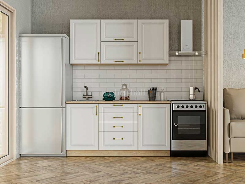 Кухня продается по секциям, которые подходят для создания как прямой, так и угловой кухни. Вы можете выбрать те модули, которые подойдут именно под габариты Вашего помещения.