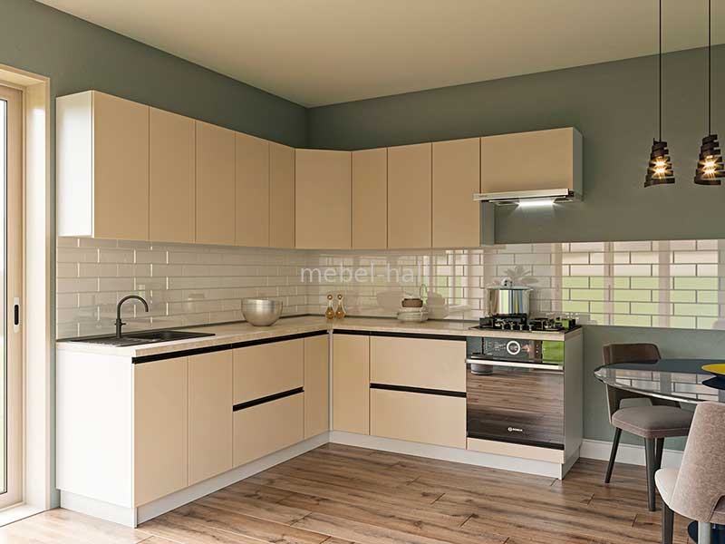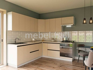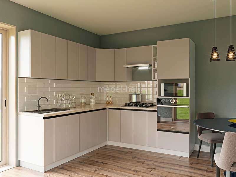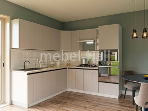 Фабричная модульная кухня Альфа с фасадами из ламинированного ДСП с встроенной ручкой типа "Gola"