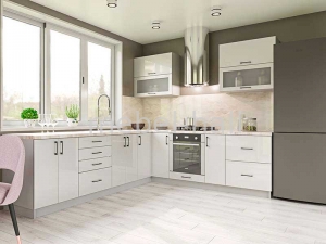 Кухня Элит Гарант имеет необходимую фурнитуру для самостоятельной сборки и установки. Верхние секции с вертикальным открытием двери - газовыми подъемниками. Кухонные секции могут быть оснащены тремя вариантами фурнитуры: