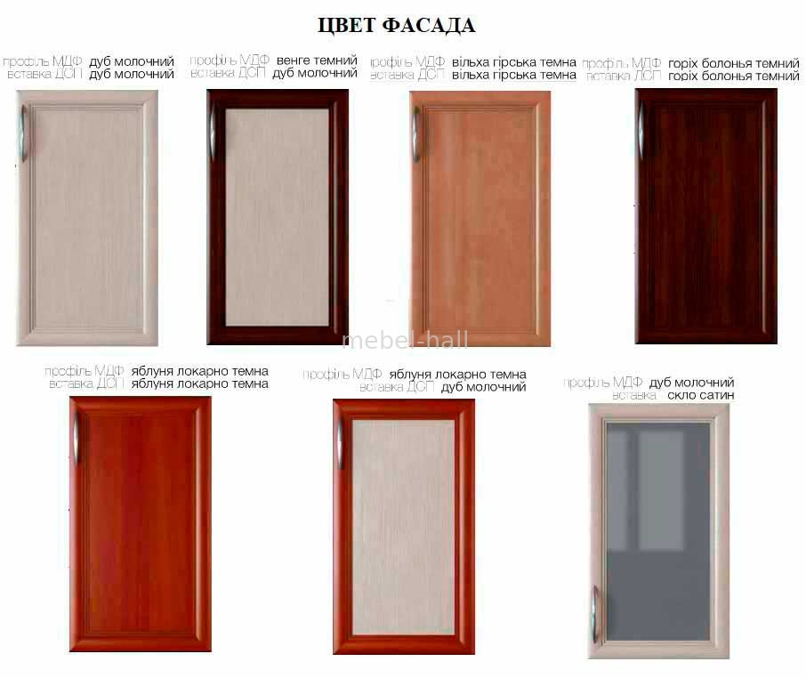 | Цвет фасадов: | Орех Болонья Темный, Ольха Горная Темная, Дуб Молочный, Яблоня Локарно Темная |