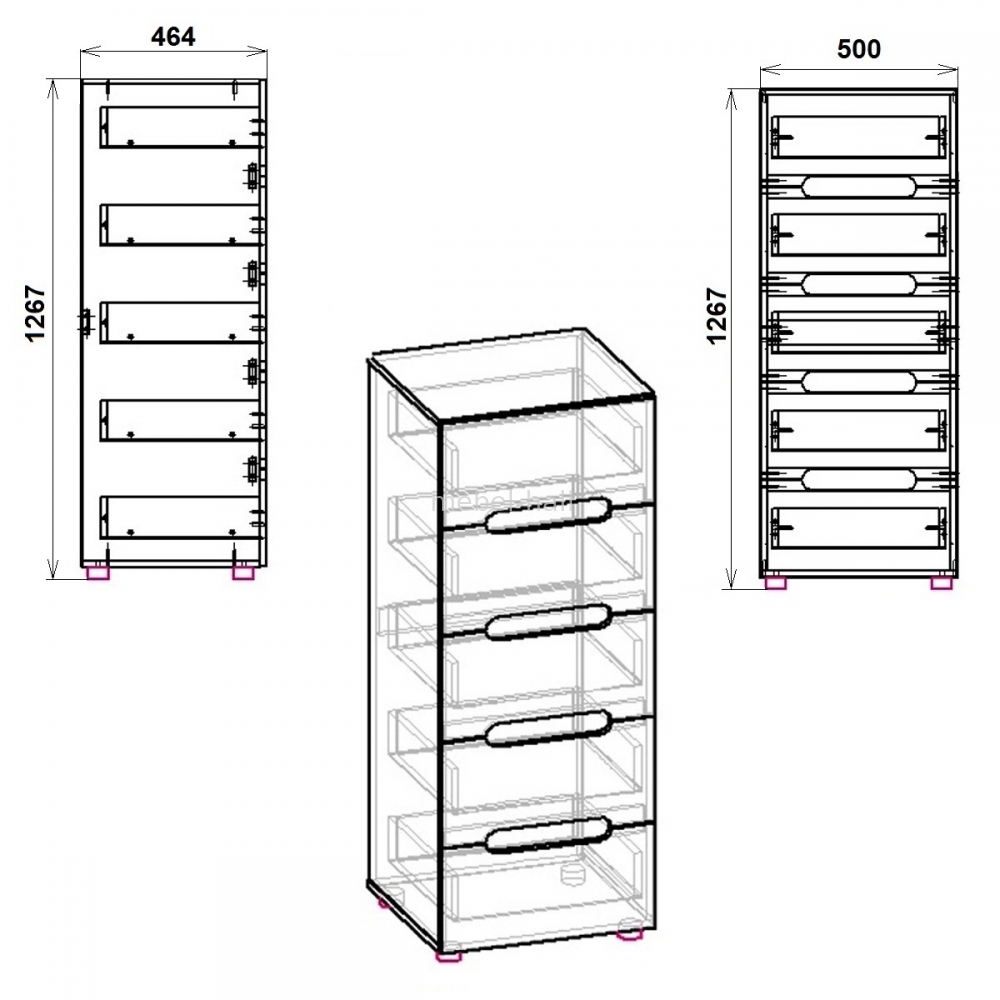 Комод 5 шухляд без ручек МС 8 Компанит ДСП