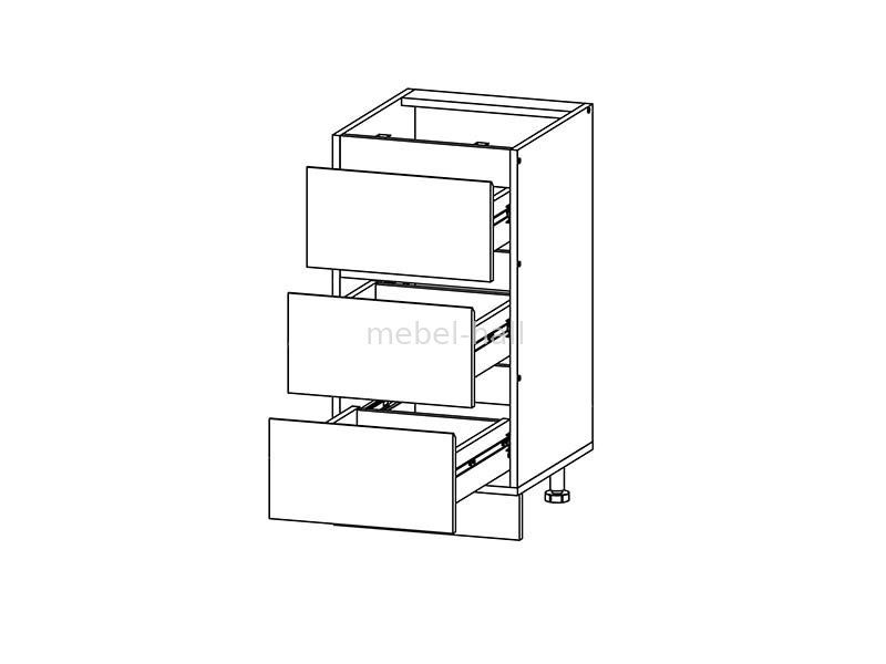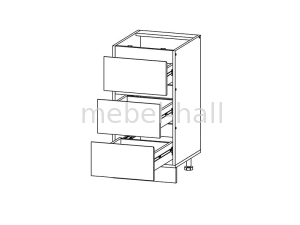 Закрытая нижняя тумба с тремя выдвижными ящиками Н40 кухни Софт, направляющие на ящиках телескопические.