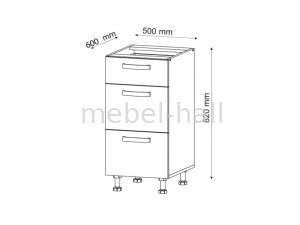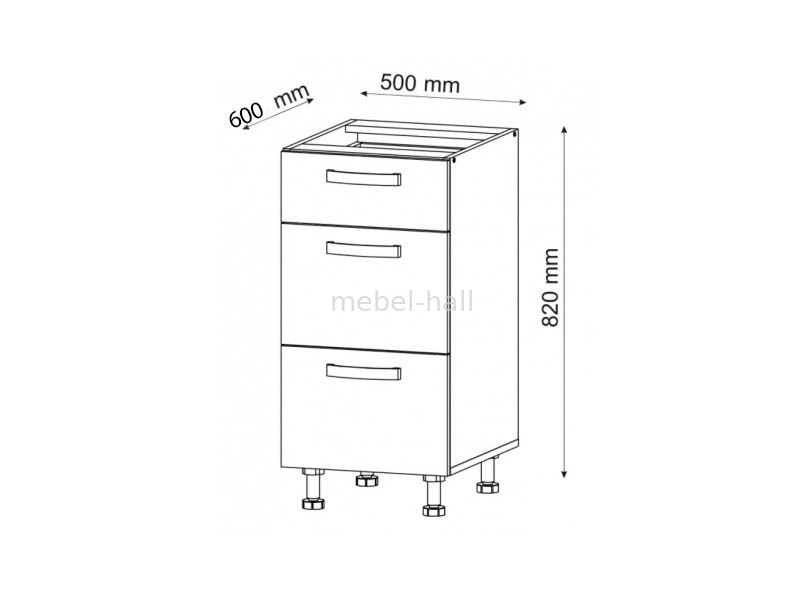 Нижний шкафчик Н50 шухляды кухни Шарлотта с тремя выдвижными ящиками.