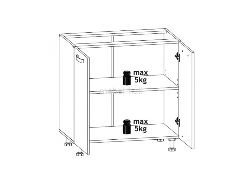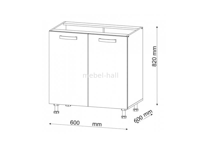 Закрытый нижний шкафчик Н60 кухни Шарлотта с двумя дверцами и одной полкой внутри.