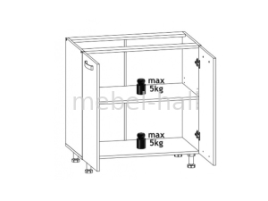 Закрытый нижний шкафчик Н80 кухни Шарлотта с двумя дверцами и одной полкой внутри.
