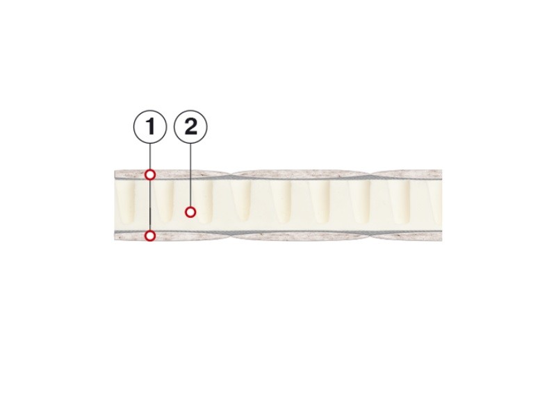 2. Латекс - натуральный вспененный материал, получаемый из молочного сока дерева Гевеи. Плотный (65-70 кг/м3), качественный и долговечный настил матраца. Латексные плиты для матрацев в основном выполняются с вертикальными отверстиями, которые придают дополнительные свойства и делают материал более дышащим. Различный диаметр отверстий по длине плиты используют для создания зон упругости.