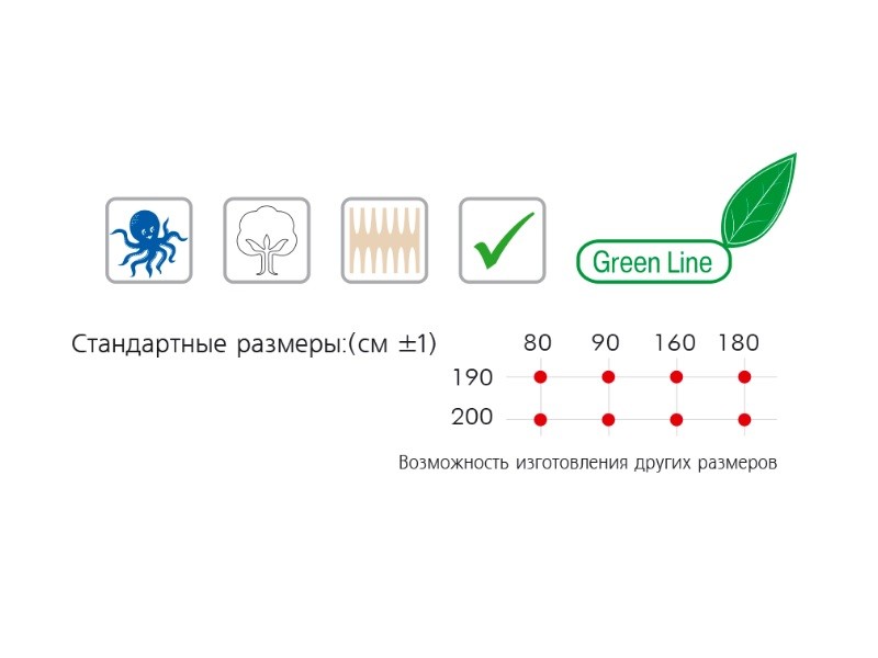 | Размер наматрацника, см: | 80х190, 90х190, 160х190, 180х190, 80х200, 90х200, 160х200, 180х200 |