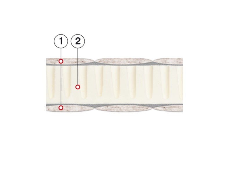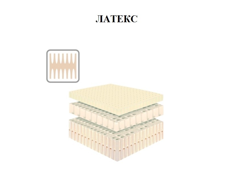 2. Латекс - натуральный вспененный материал, получаемый из молочного сока дерева Гевеи. Плотный (65-70 кг/м3), качественный и долговечный настил матраца. Латексные плиты для матрацев в основном выполняются с вертикальными отверстиями, которые придают дополнительные свойства и делают материал более дышащим. Различный диаметр отверстий по длине плиты используют для создания зон упругости.