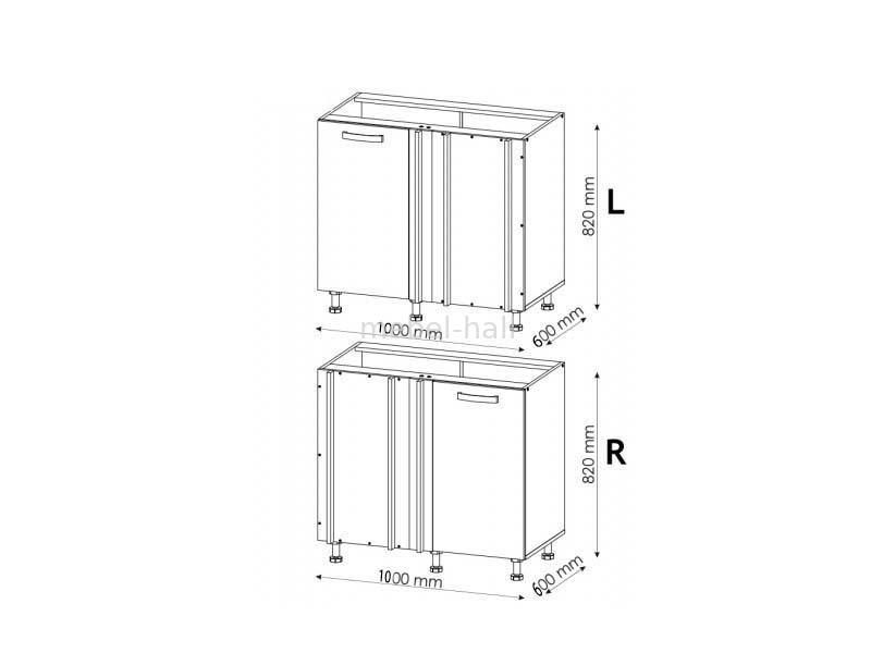 Нижний угловой шкафчик 100х60 кухни Шарлотта с полкой внутри, может быть как левосторонний, так и правосторонний.