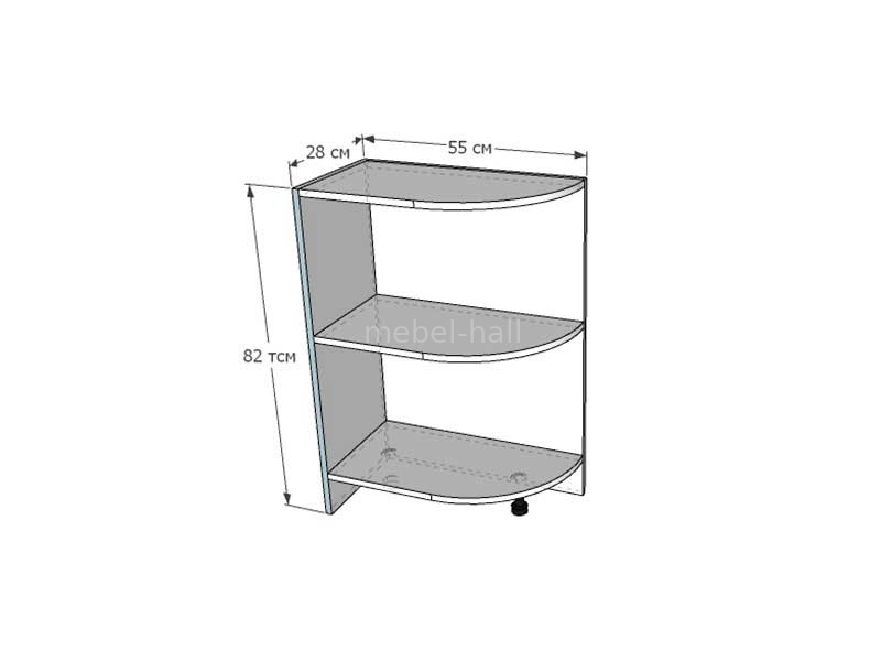 Нижняя секция угловой окончание НКЗВР-28х82 модульной кухни Санрайз Премьер Гарант 28х82х55 см пленочный МДФ с фрезеровкой