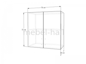- верхние секции высотой 72 см (высота пеналов 214 см) и 92 см (высота пеналов 234 см), глубиной 30 см, без паза для ДВП;