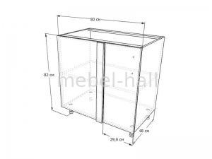 - нижние секции имеют высоту 82 см с ножками 10см без учета столешницы, а глубину 48см;