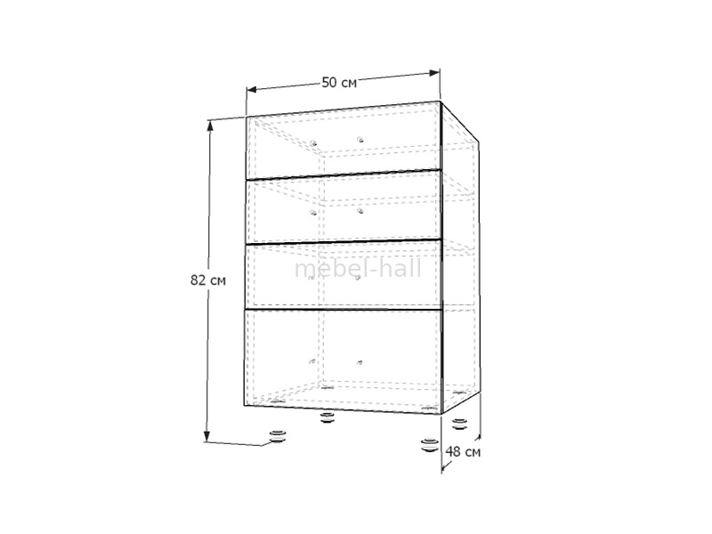 Нижний шкафчик с четырьмя выдвижными ящиками НЯ-(3+1) 50х82.