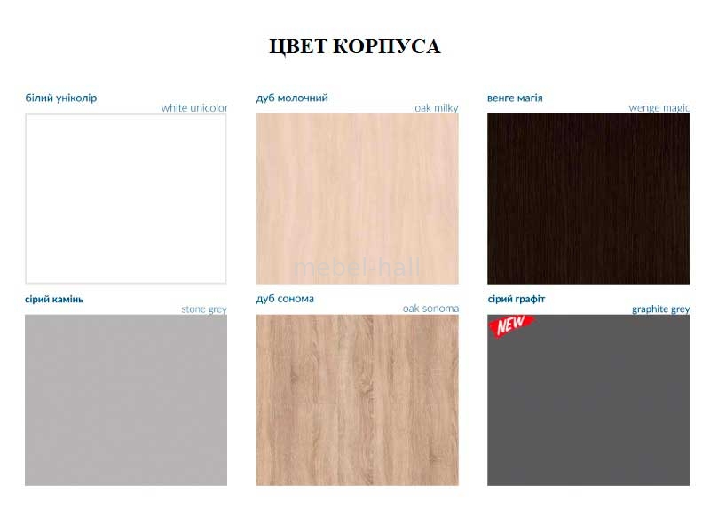 | Цвет корпуса: | Серый Графит, Серый Камень, Дуб Молочный, Венге Темный, Белый Униколор, Дуб Сонома |