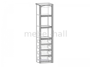 Пенал имеет одно закрытое отделение, две открытые полки и 4 выдвижных ящика.