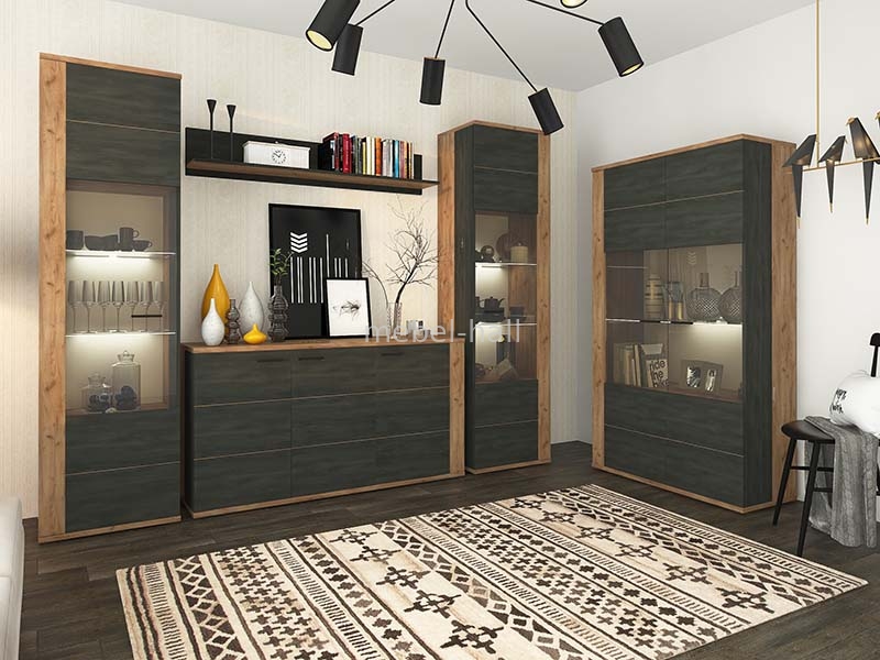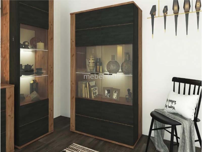Пенал 2Д - стильная витрина для гостиной украинского производителя Сокме. Мебель выполнена в стиле лофт. В данном изделии было использовано сочетание двух темных древовидных декоров. Оригинальное исполнение фасадов в сочетании со стеклом бронзового цвета придает данному изделию приятной темно-дымчатой тональности. Дополнительно доступна подсветка стеклянных полок. Такая мебель станет ярким акцентом, придаст неординарности и харизмотичности Вашей комнате. Модуль оснащен качественной мебельной фурнитурой.