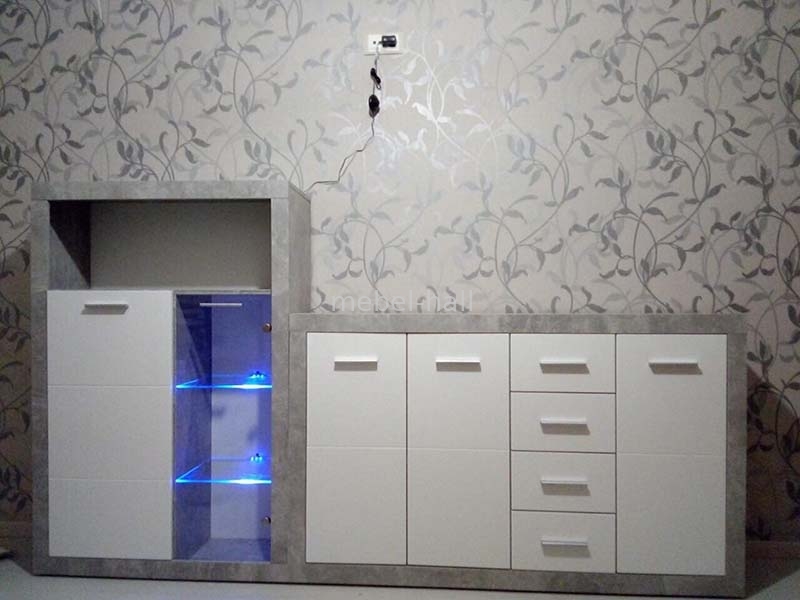Фасад выполнен из МДФ в цвете Белый + ДСП в цвете Индастрил.