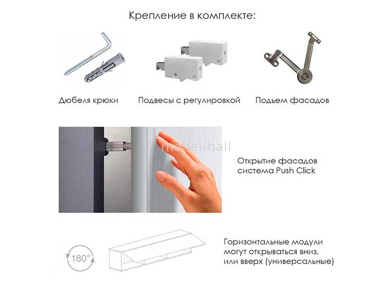 - фурнитура Push to Open фасады открываются способом нажатия;