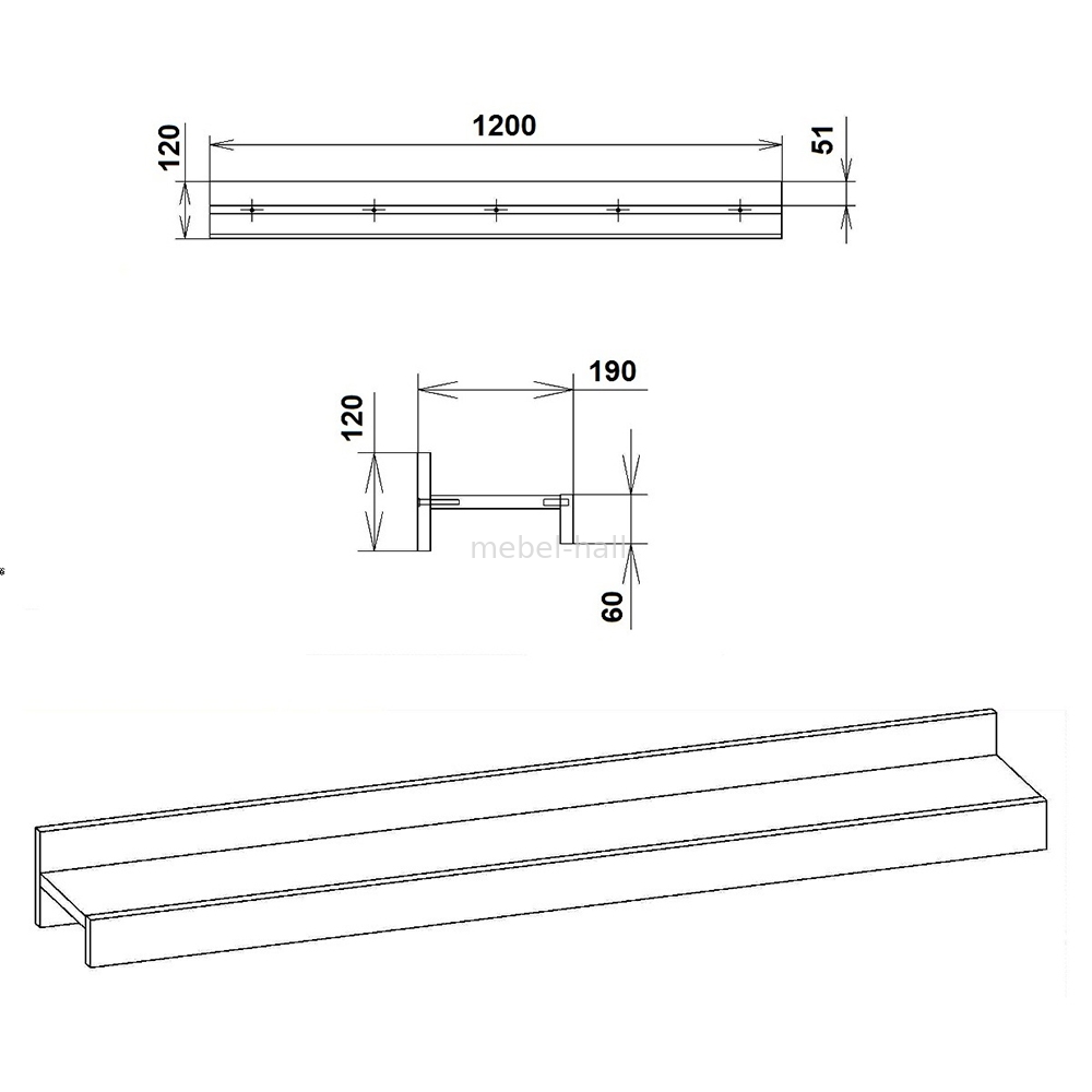 Полка П-22 - классическая полка на стену подойдет для как для дома, так и для офиса.
