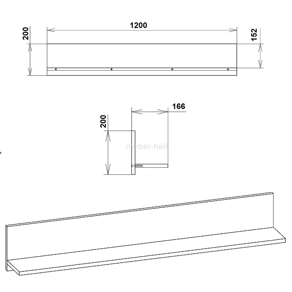 | Вид мебели: | Полка навесная |