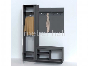 Прихожая с 2-мя вешалками, тумбой для обуви и шкафом Брайт Мастер Форм 1420х376х2000h мм ДСП Антрацит