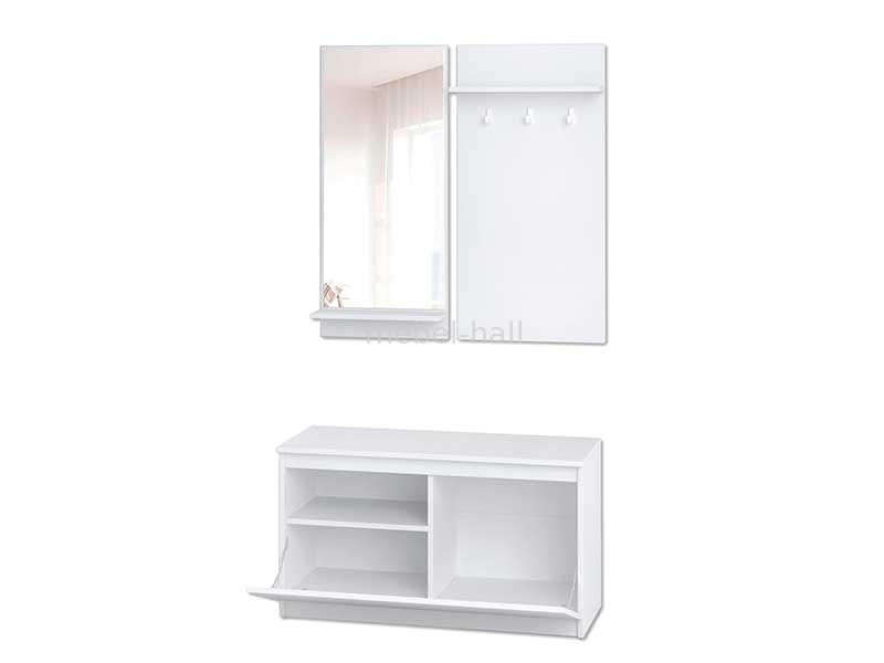 Прихожая с зеркалом, вешалкой и тумбой для обуви Брайт Мастер Форм 900х376х2000h мм ДСП Белый