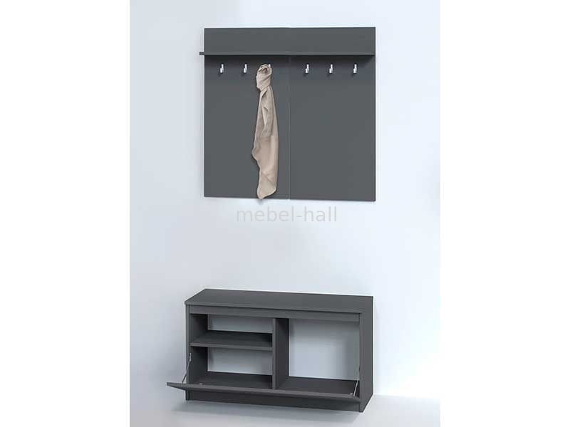 Прихожая с 2-мя вешалками и тумбой для обуви Брайт Мастер Форм 900х376х2000h мм ДСП Антрацит
