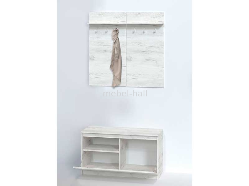 Прихожая с 2-мя вешалками и тумбой для обуви Брайт Мастер Форм 900х376х2000h мм ДСП Дуб Крафт Белый