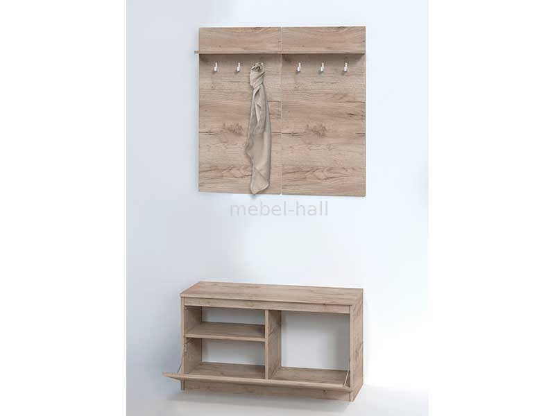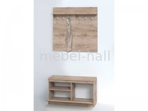Прихожая с 2-мя вешалками и тумбой для обуви Брайт Мастер Форм 900х376х2000h мм ДСП Дуб Крафт Серый