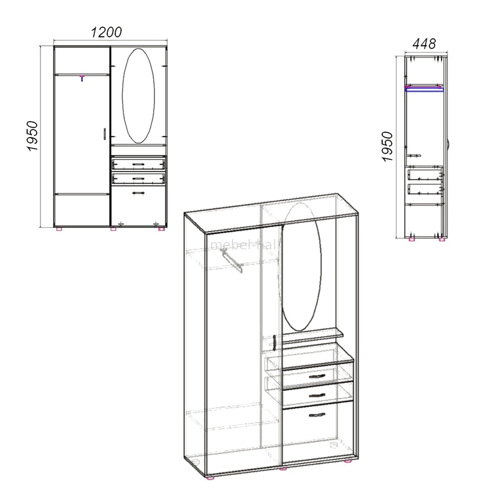 | Особенности: | С зеркалом, С шухлядами, С шкафом, С отсеком для обуви |