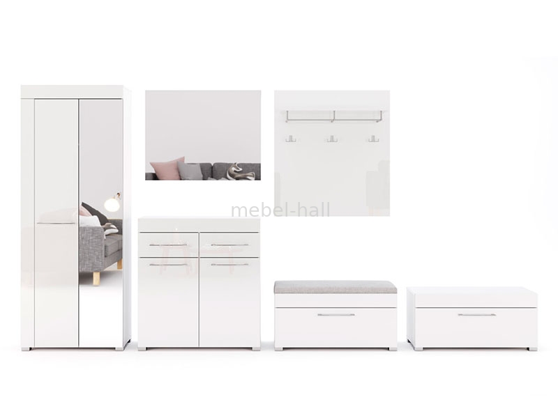 Модульная мебель для прихожей в современном стиле с белоснежными глянцевыми фасадами от украинской мебельной фабрики MiroMark. Привлекательный дизайн, новейшие тенденции, лаконичность, функциональность, качественные материалы и фурнитура, помогут легко оформить стильный интерьер комнаты.