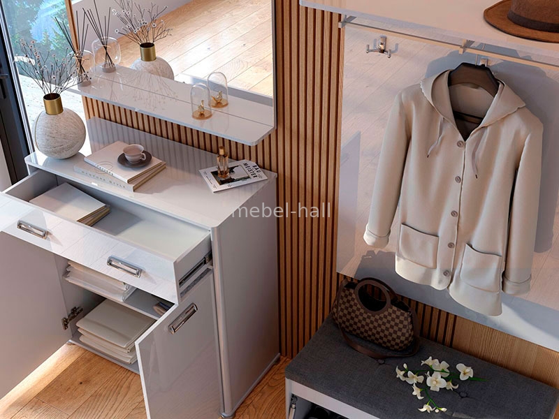 Модульная мебель для прихожей в современном стиле с белоснежными глянцевыми фасадами от украинской мебельной фабрики MiroMark. Привлекательный дизайн, новейшие тенденции, лаконичность, функциональность, качественные материалы и фурнитура, помогут легко оформить стильный интерьер комнаты.