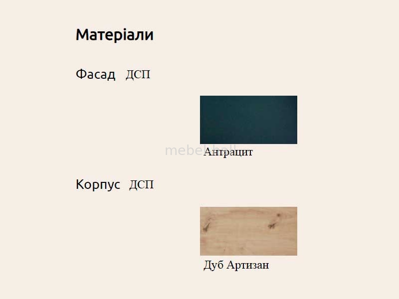 Корпус выполнен из ламинированного ДСП в цвете Дуб Артизан.