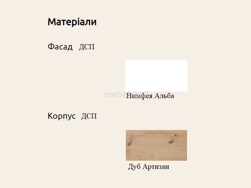 Фасад выполнен из ламинированного ДСП в цвете Нимфея Альба.