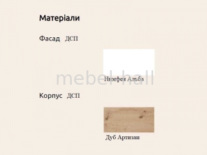 Корпус выполнен из ламинированного ДСП в цвете Дуб Артизан.