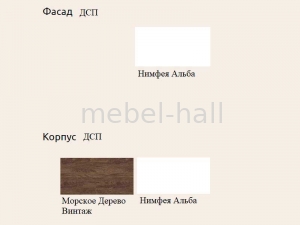 Корпус выполнен из ламинированного ДСП в цвете Морское Дерево Винтаж / Нимфея Альба.
